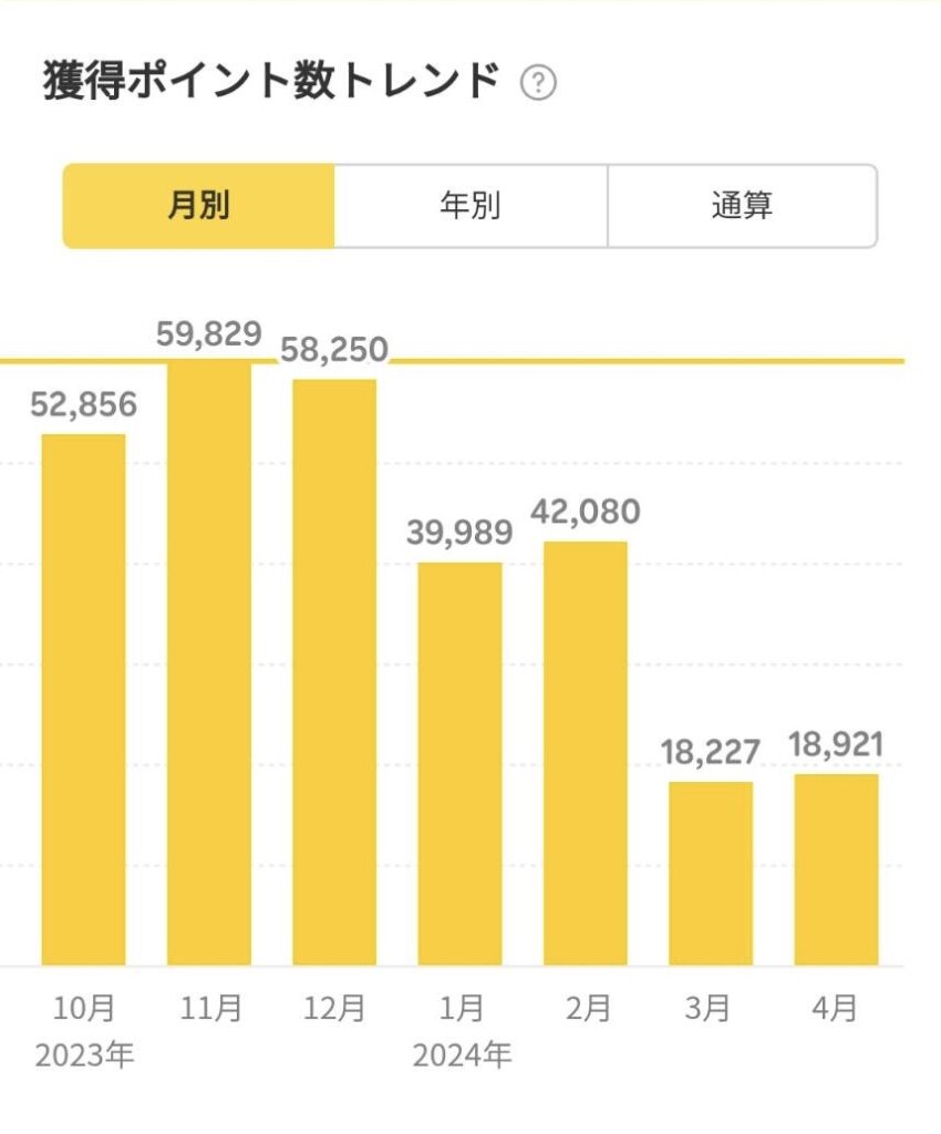 1ヶ月平均では昨年は平均5万ポイントを獲得していました!!
